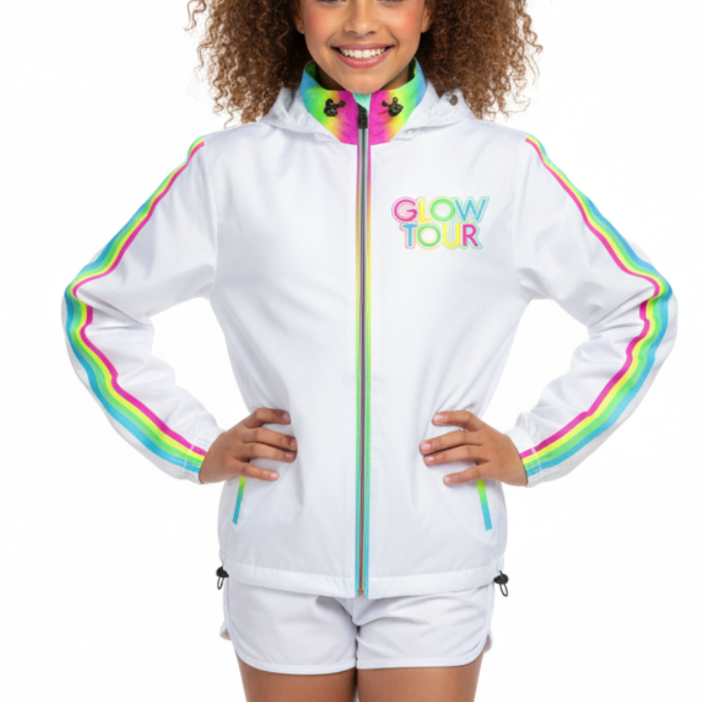 Windbreaker jacket with pockets and hood. This item is for presale and will be available for pick up at THE DEEP SOUTH GLOW TOUR events!