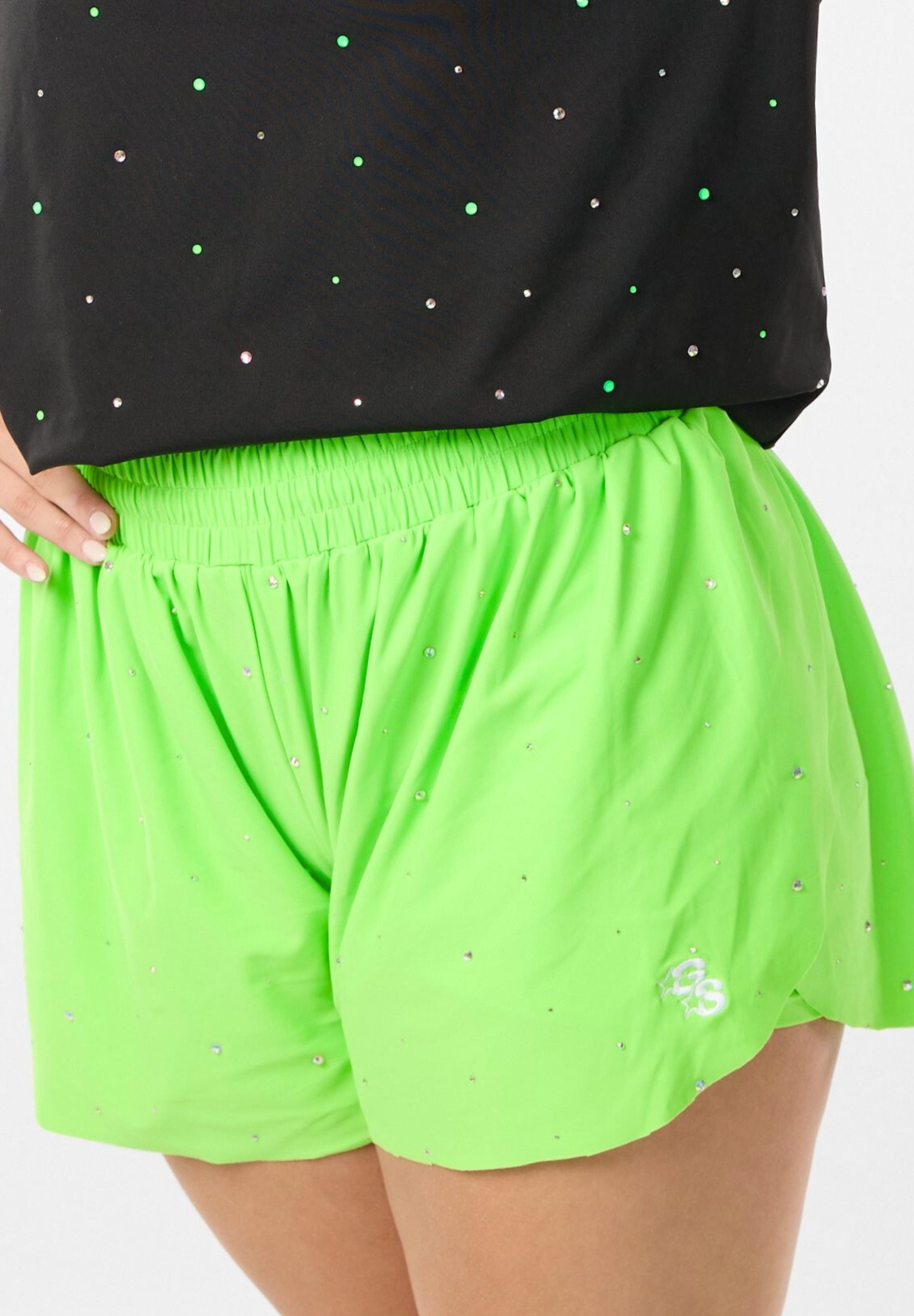 Neon Sparkles Lime Green Fly Shorts with Bling