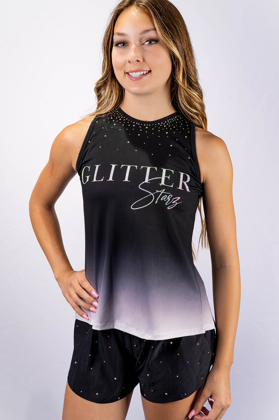 Bow Back Tank Top - Black with Rhinestone Neck - T13