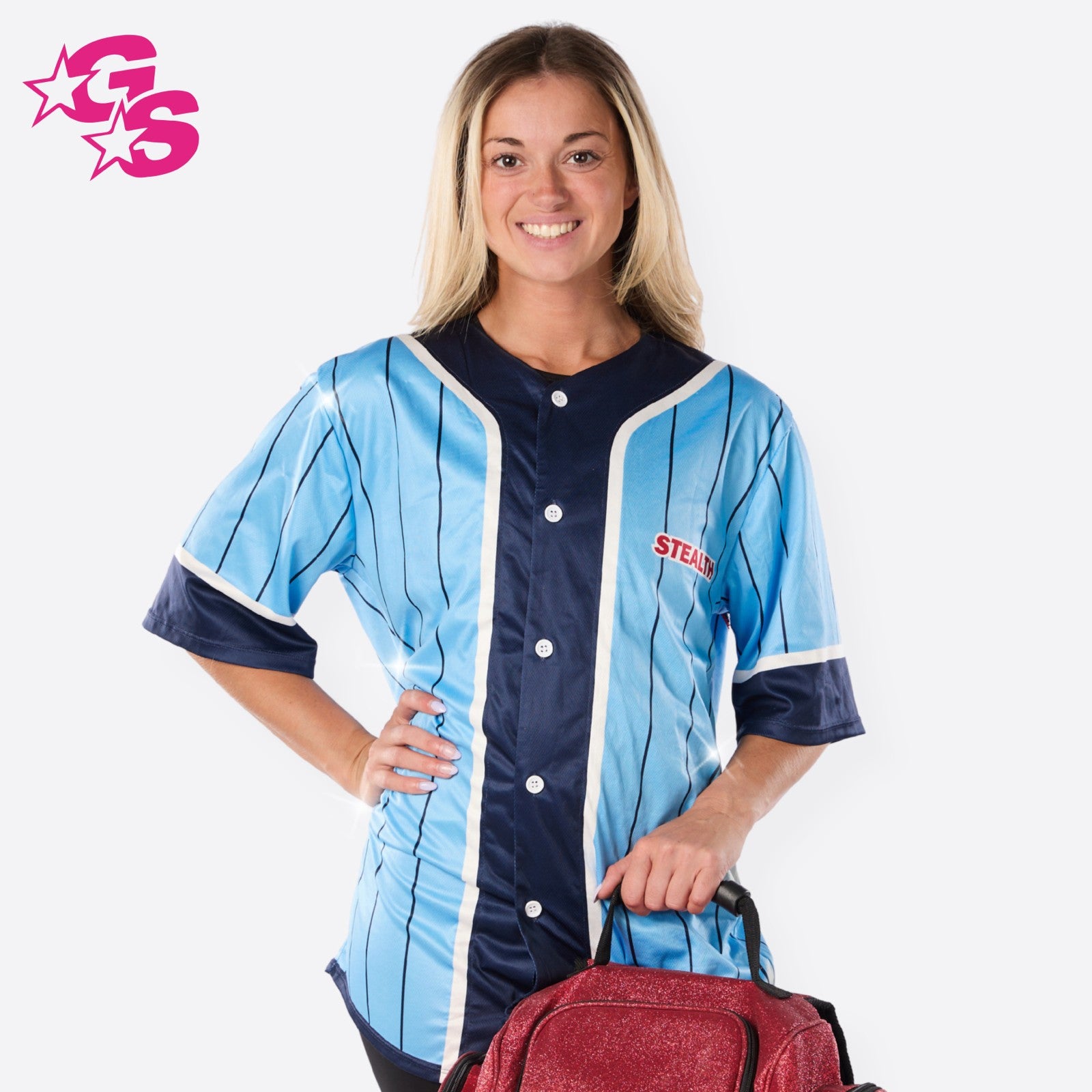 Customize with your team logo and colors! Features a button-up top with shorts in a silky finish. Available in over 100 sublimated patterns.